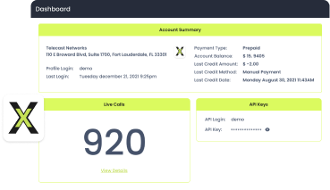 Self-service portal for carriers to add credits via Stripe or PayPal. Automatic balance updates with immediate service activation.